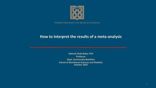 The workshop aimed to enhance participants' research capabilities in understanding and conducting meta-analysis. Dr. Shab-Bidar presented key topics including "Introduction to Meta-analysis," "Steps to Perform Meta-analysis," "Statistical Methods in Meta-analysis," and "Interpretation of Meta-analysis in Articles."